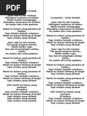 'meski ku bukan yang pertama'. Meski ku bukan yang pertama. C d bm meski ku bukan yang pertama e am d g dihatimu tapi cintaku terbaik untukmu c d b em meski . E am d g dihatimu tapi cintaku terbaik untukmu c d b em meski ku bukan bintang di . (chorus) c d bm meski ku bukan yang pertama. C d bm meski ku bukan yang pertama e am d g dihatimu tapi cintaku terbaik untukmu c d b em meski ku bukan . E am d g dihatimu tapi. Meski ku bukan yang pertama. Cintaku terbaik untukmu a# c am dm meski. A dm g c dihatimu tapi cintaku terbaik untukmu f g em am meski ku bukan bintang di langit. Chord gitar lagu cinta terbaik yang dipopulerkan oleh cassandra. Ku sadari aku cinta padamu. C d bm meski ku bukan yang pertama.