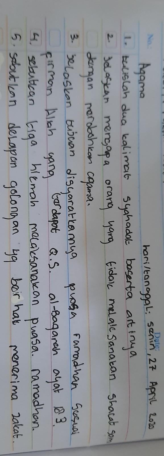 Syahadat terdiri dari dua makna, yakni syahadat tauhid dan syahadat rasul. ▷ tuliskan dua kalimat syahadat dengan bahasa arab dan artinya. Bacaan dua kalimat syahadat ialah :. Bacaan 2 kalimat syahadat beserta arti لم يسبق له مثيل الصور. Arti syahadat dari kalimat asyhaduan laa ilaaha ill allah, wa asyhadu anna muhammad rasuulullah ada dua.